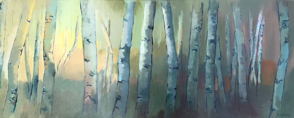 Color and light in the different seasons and the feeling of getting lost among trees are the subject of these paintings, rather than the recreation of the place itself.