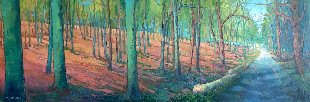 Entre árboles - El color y la luz en las diferentes estaciones del año y la sensación que me provoca perderme entre árboles, sobre todo en los bosques, son el tema de estos cuadros, más que la recreación del lugar mismo.
