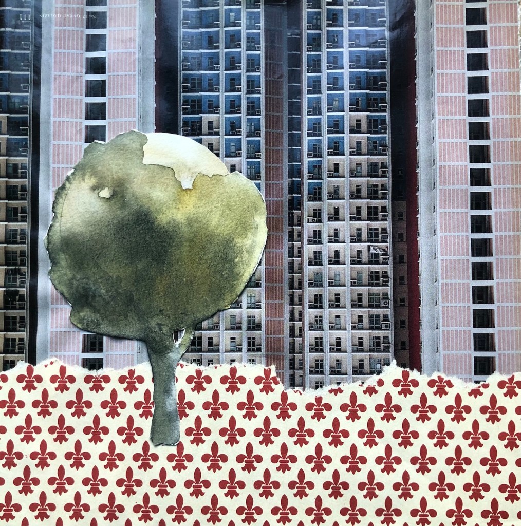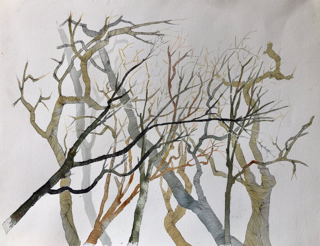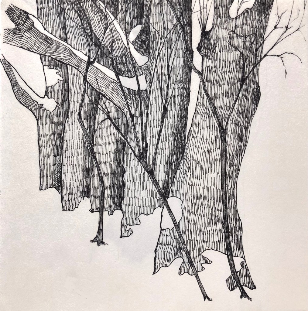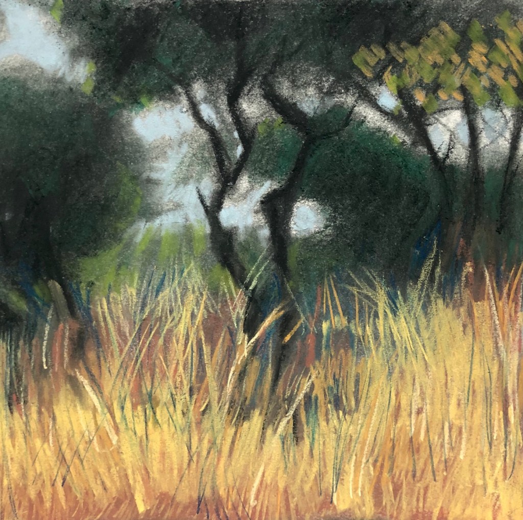 Paper would not exist without trees. Perhaps this is why I feel such tenderness and respect for it. This is a sample of my first forays into techniques other than oil, all of them on paper: ink, pastel, watercolor, collage…