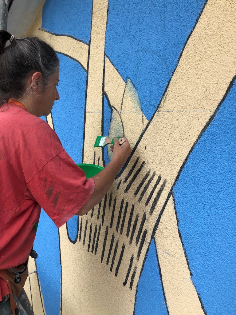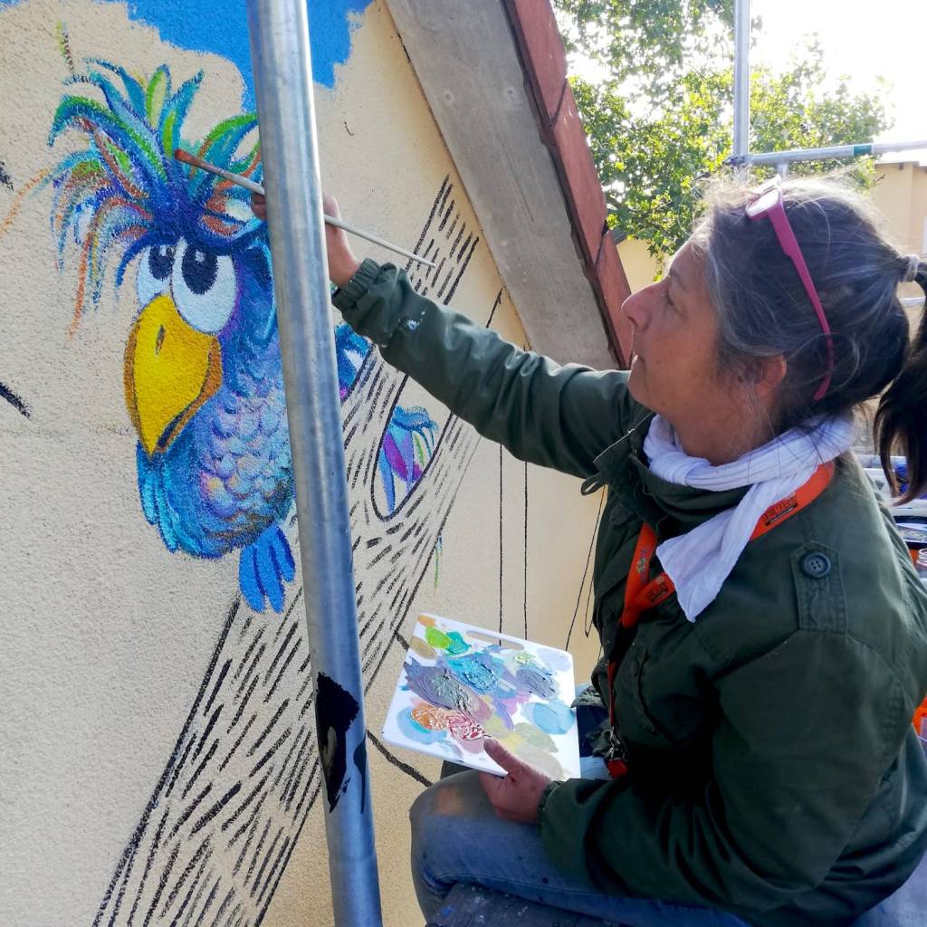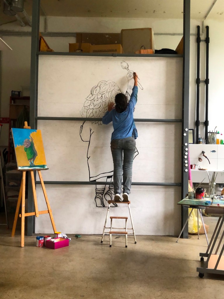 In the winter of 2021 the first urban art project of the city of Göttingen was born, and I participated painting one of the facades of the Weststadt district. At the end of the summer the first scaffolding was installed at the corner of Narzissenweg, where for six weeks, I painted my first mural: 70 square meters for RaMona and her world.