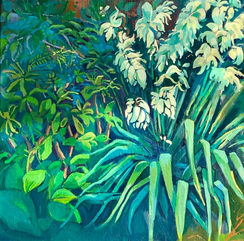 Outside the botanical gardens, 2020. Oil on paper, 32×24.