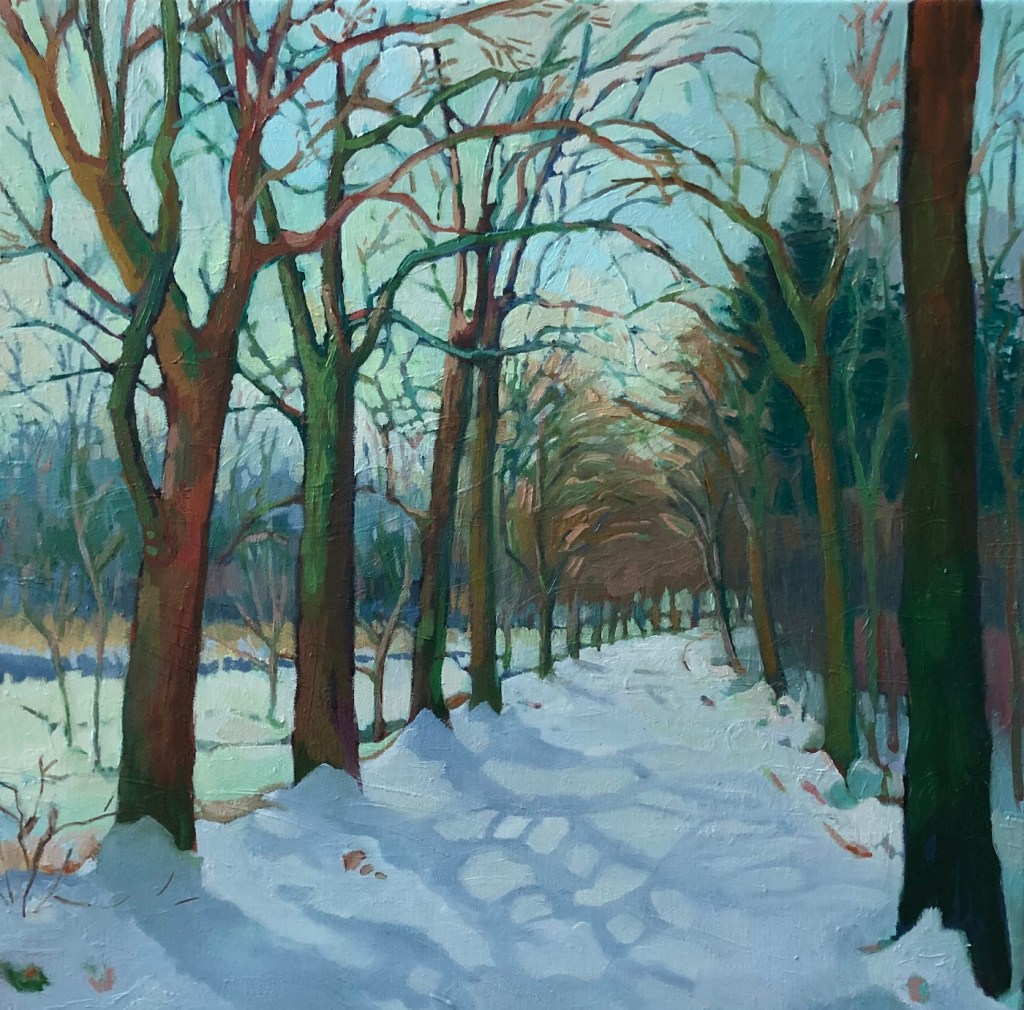 On the way to the studio, near the Leine river, 2021. Oil on canvas, 60x60.