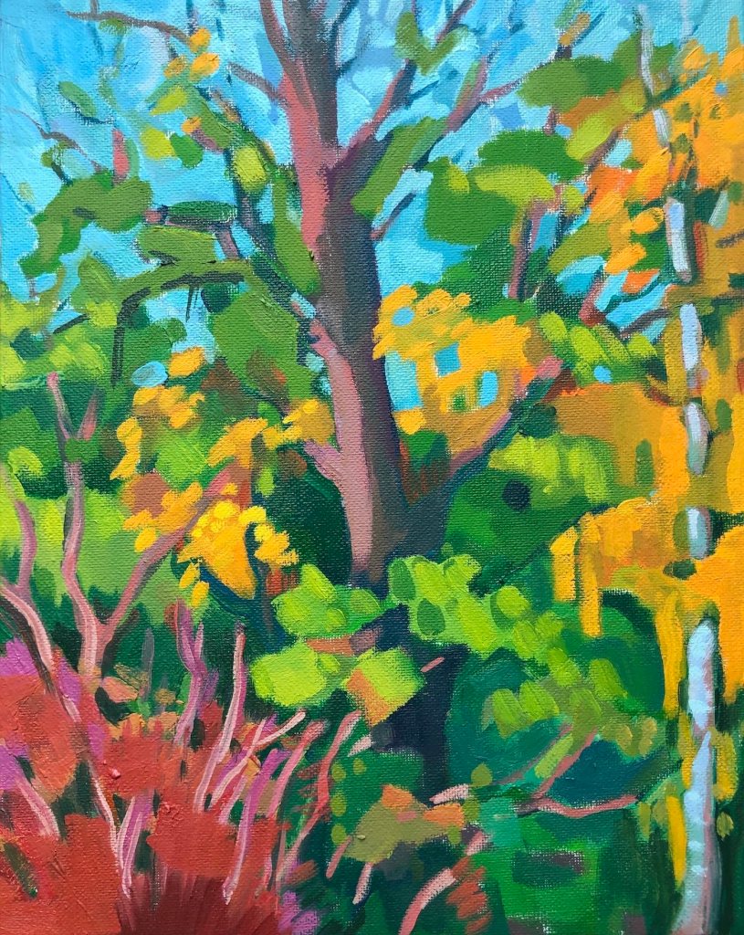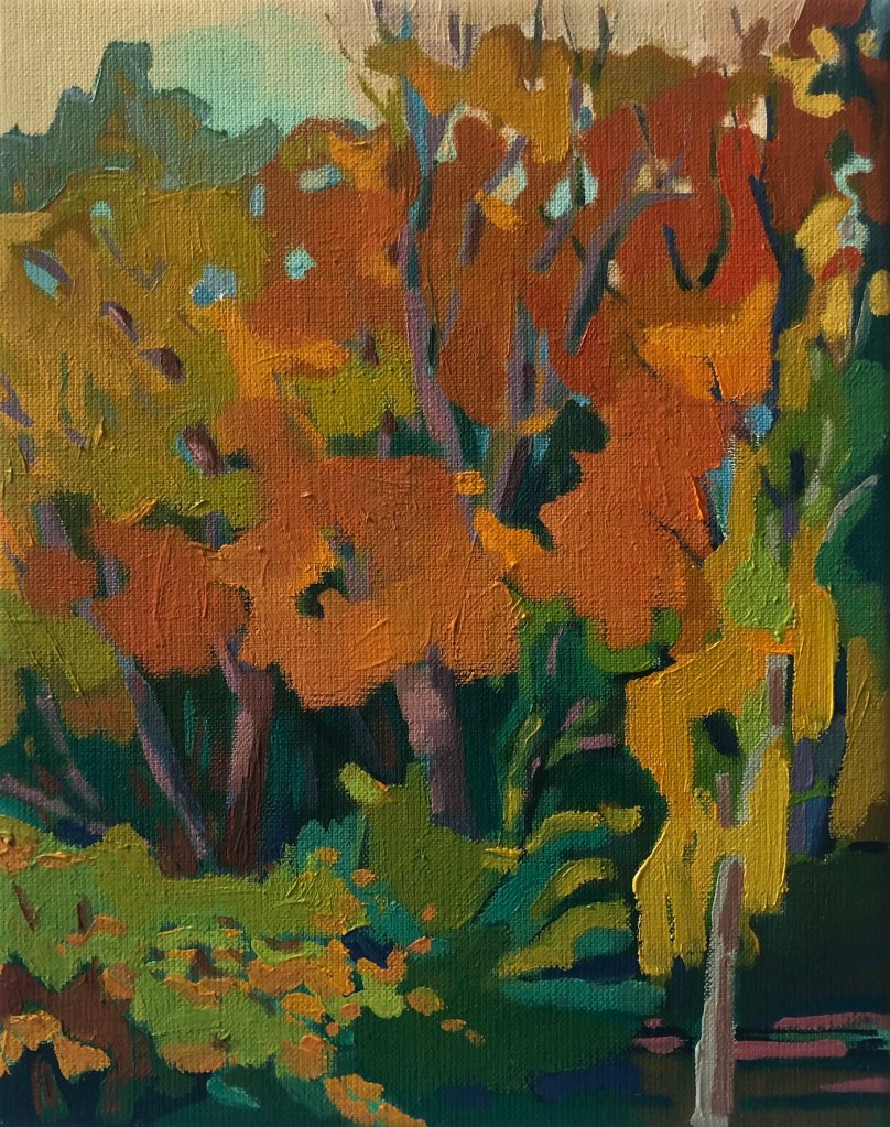 October from my studio window, 2020. Oil on canvas, 33x22.