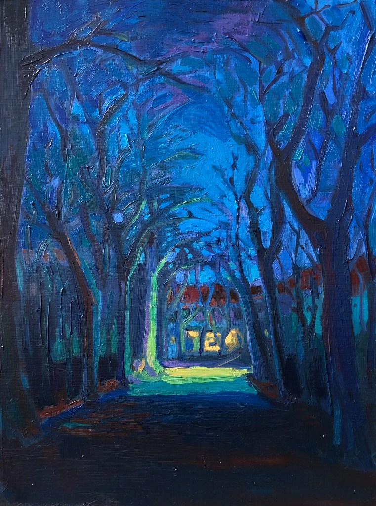 Winter evening, 2020. Oil on paper, 32×24.