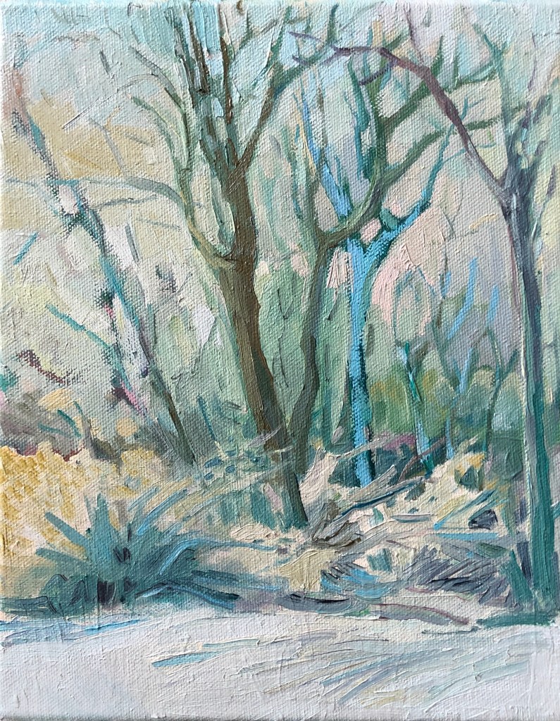 November from my studio window, 2022. Oil on canvas, 30×24.